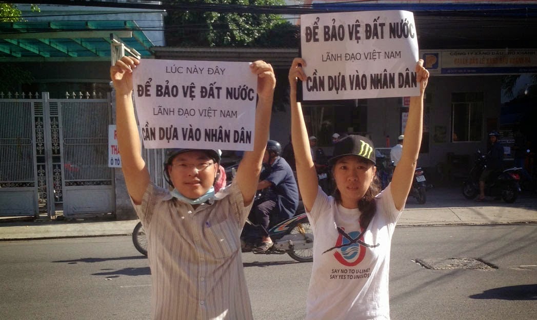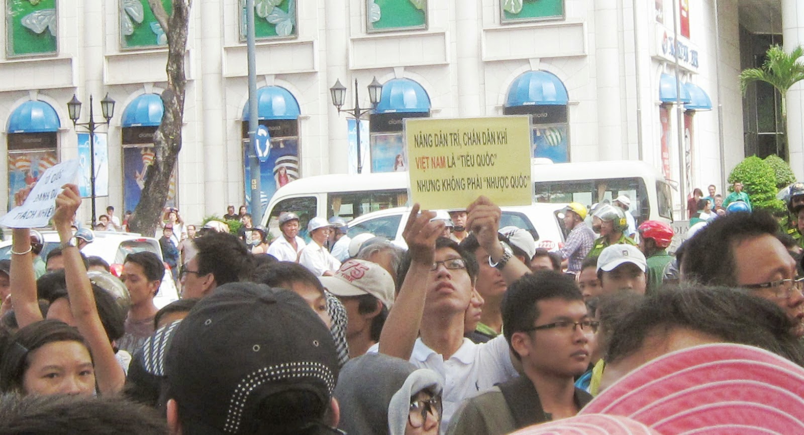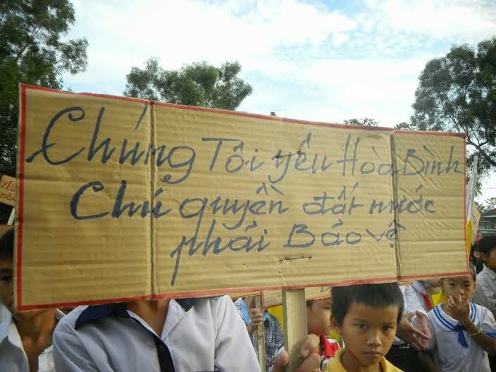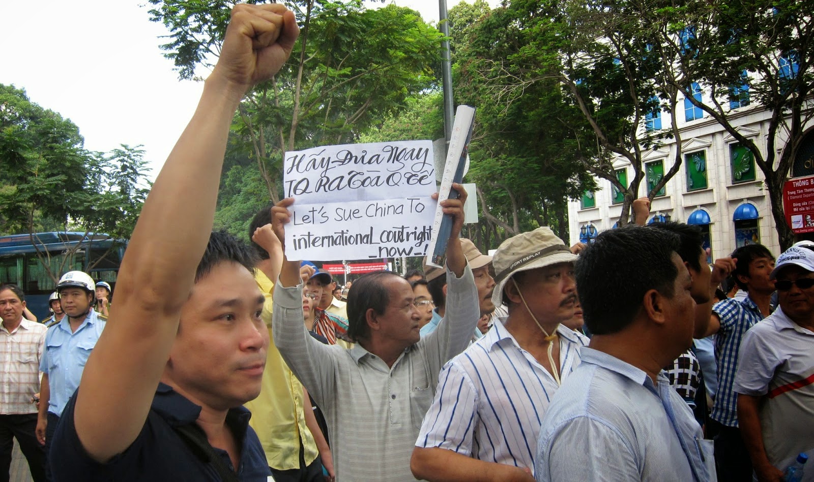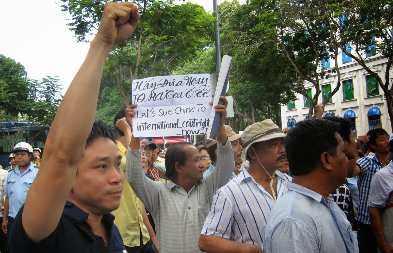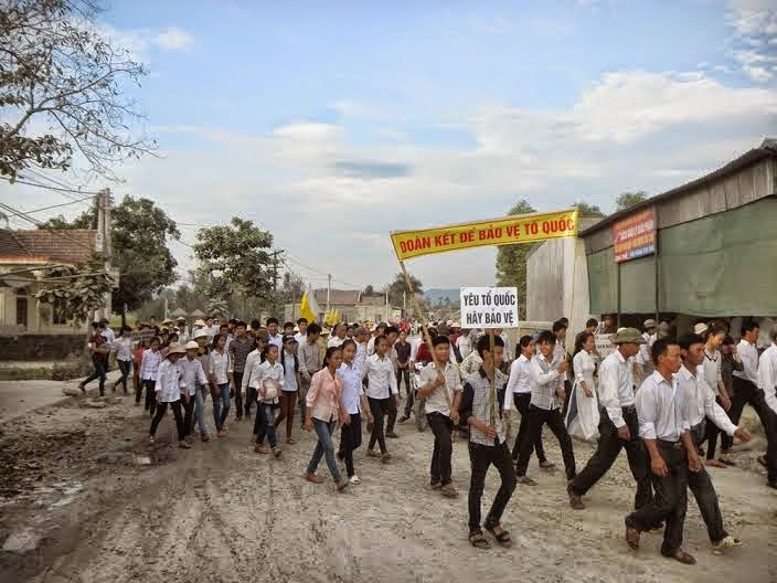 Thứ nhất, chúng tôi những người biểu tình chống lại sự xâm lược của Trung Cộng đối với biển đảo Việt Nam, phản đối nhà đương cục Trung Cộng hạ đặt giàn khoan HD 981 trong lãnh hải Việt Nam trong những ngày qua là những người yêu nước đích thực, chúng tôi xuống đường theo tiếng gọi của trái tim trước đại họa mất nước, trước nguy cơ dân tộc bị Hán hóa, bị nô lệ giặc Tàu thêm nhiều ngàn năm nữa… chứ chúng tôi hoàn toàn không bị bất cứ thế lực nào kích động bạo loạn để gây mất trật tự, an ninh. Ngay cả những người Việt ở hải ngoại, cũng vì nặng lòng vời quê hương dân tộc, với vận mệnh của của đất nước và với tiền đồ của dân tộc trước cơn nguy biến của sơn hà, mà luôn hướng lòng về quốc nội, dõi theo từng bước chân của những người yêu nước trên mỗi chặn đường đấu tranh giành độc lập cho dân tộc, và chủ quyền biển đảo cho đất nước. Họ không phải là “các đối tượng phản động lưu vong” như cáo buộc của báo chí và truyền thông lề đảng, bởi họ chưa từng dâng bán một tấc đất, một thước biển nào của tổ quốc cho ngoại bang thì sao lại gán cho họ cái tội đồ phản quốc, phản động? Đã từng có một văn tự, một công hàm nào của những người Việt Quốc Gia nhượng bán đất đai biến giới hay biển đảo của tổ quốc cho ai đâu mà gọi họ là “đối tượng phản động lưu vong”?