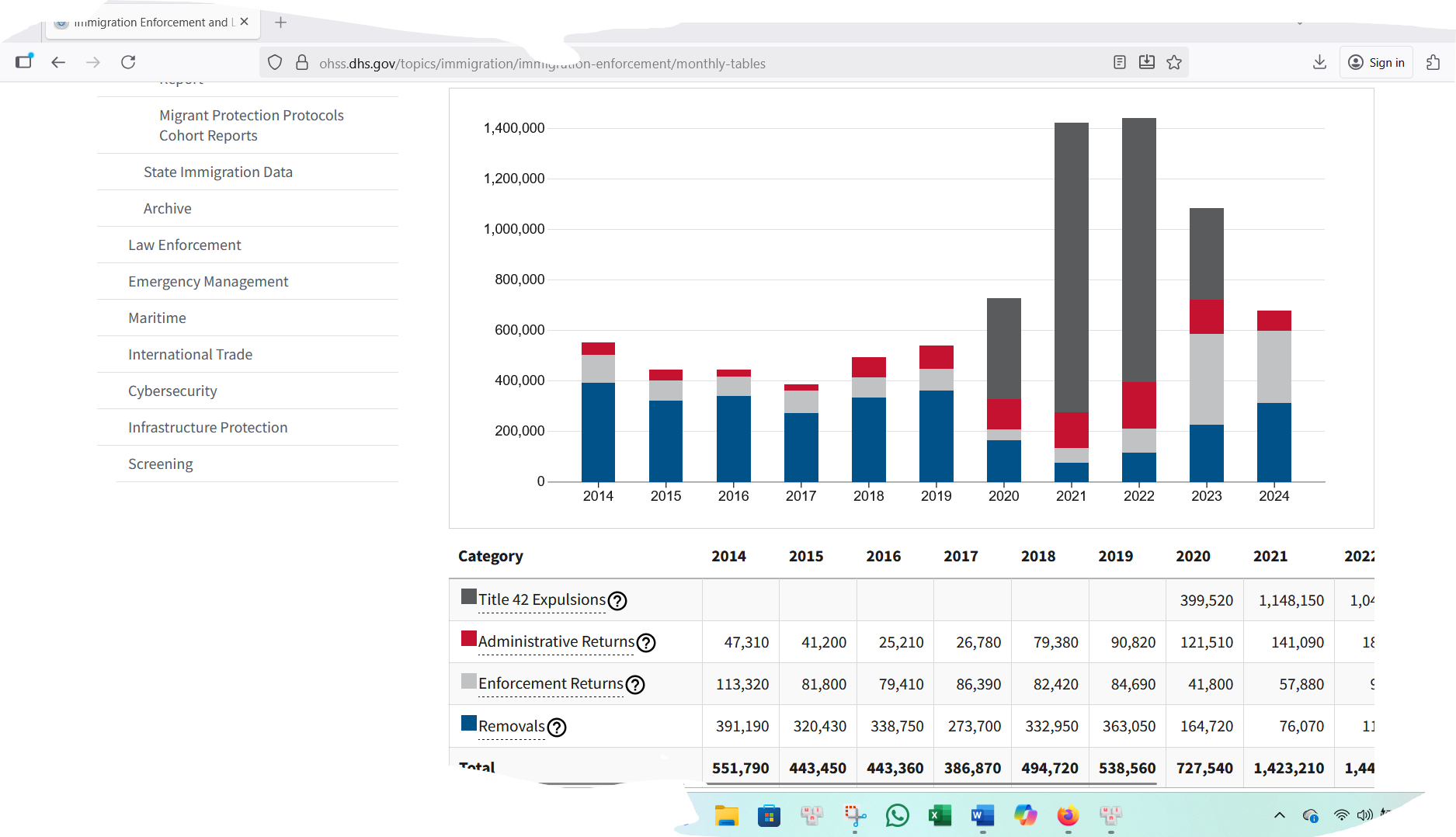 Thống kê của cơ quan DHS trong hình này cho thấy 3 năm cuối cùng của Obama, số người bị đuổi ra khỏi nước Mỹ trung bình là 479 ngàn trong khi con số của Trump {quân bình 453 ngàn sau khi trừ ra số người dẫn độ về Mễ (399K) qua vụ COVID bắt đầu năm 2020} vẫn thấp hơn ở nhiệm kỳ đầu của ba năm cuối cùng. Không biết nhiệm kỳ thứ hai của Trump ra sao nhưng cơ quan Homeland Security dùng truyền thông để làm gia tăng sự sợ hãi của người dân qua những màn trình diễn được giới truyền thông và người dân ghi lại. Phải chăng đây là mục đích để chứng tỏ chính quyền Trump mạnh về di trú hay là một tuyên truyền mị dân?